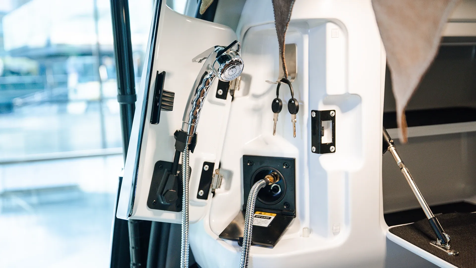 This can help power the 36-litre fridge, the portable shower at the back, and a super-modern temperature control system to keep you warm throughout the day and night.