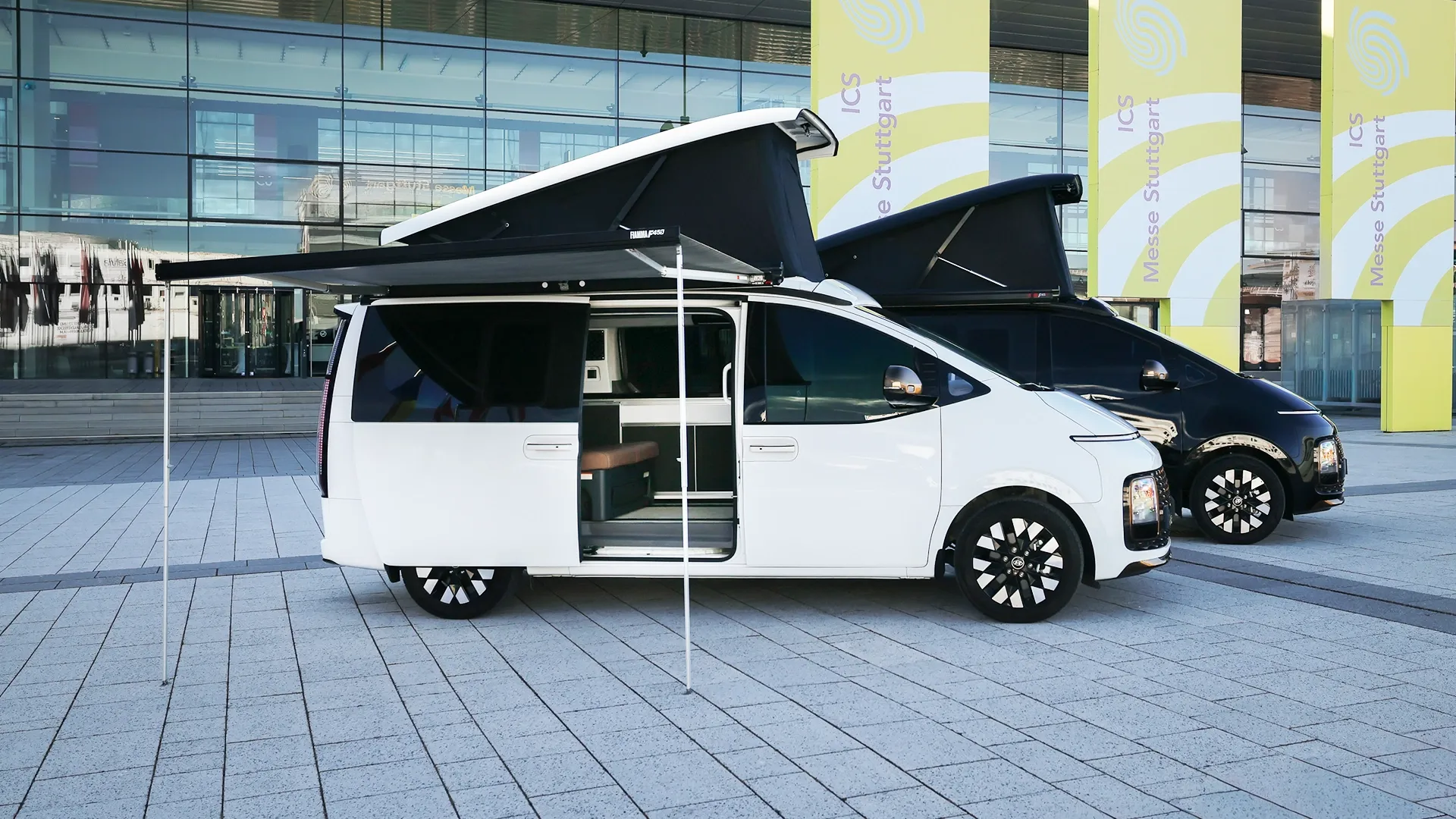 You wouldn't really think of Hyundai in any conversation about camper vans, but that could change as they kitted out their newly announced Staria van with camper van features such as a fold-down bed, a power-operated pop-up roof, a small kitchen and an electric awning.