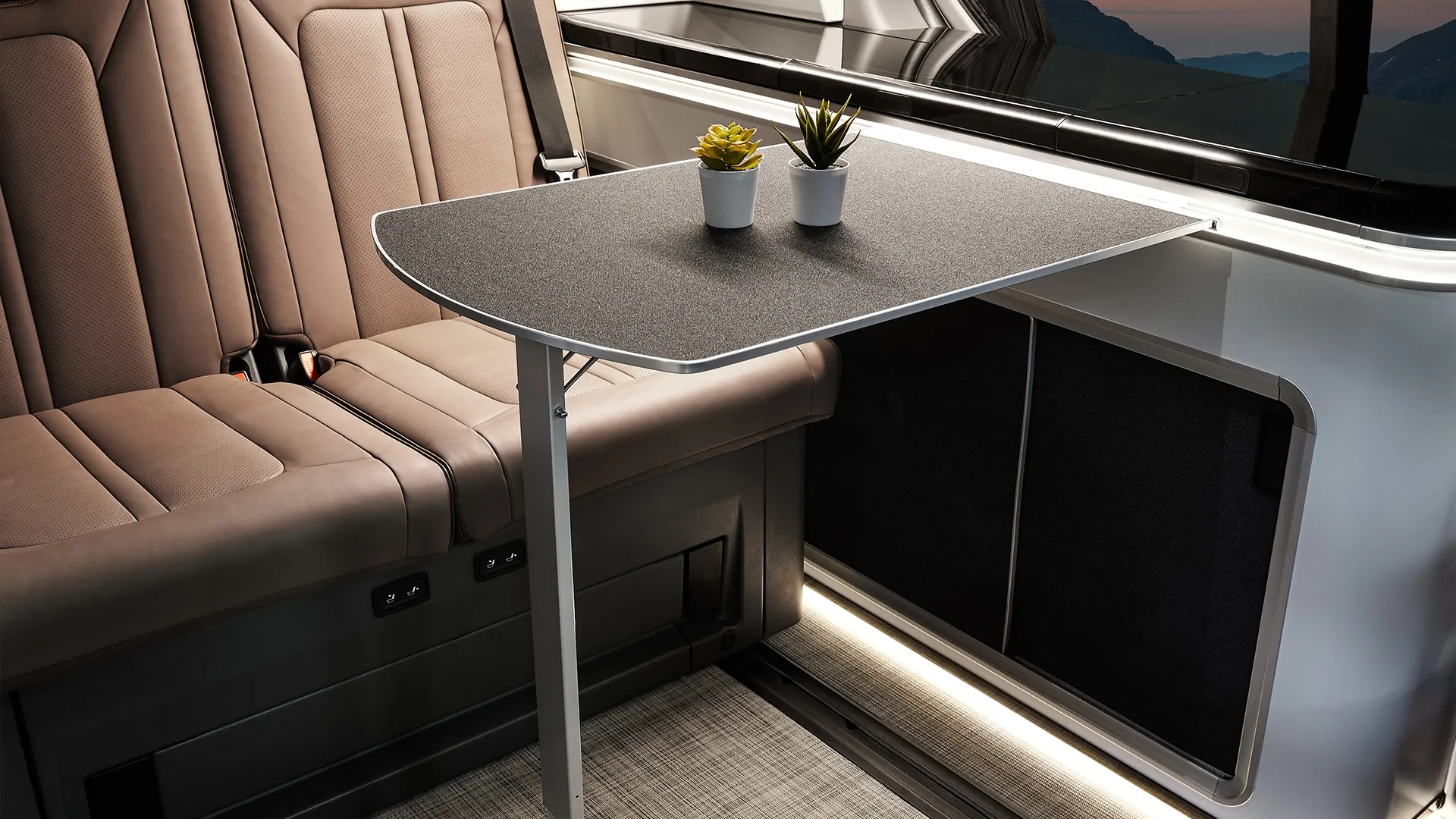As mentioned, this is packed with tech, such as adding adjustable smart glass in the rear of the camper, allowing you to control the transparency and shading of the glass from the control panel.